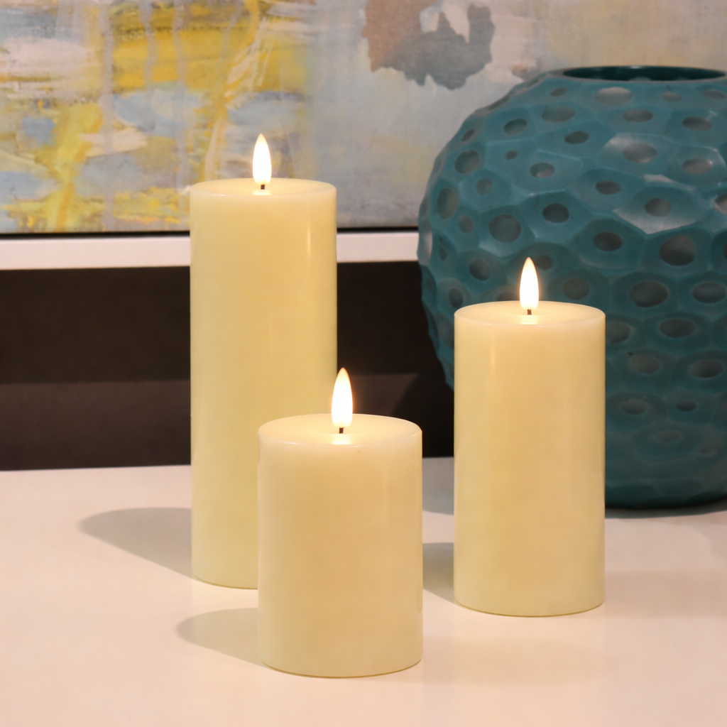 Enjoy the indoors and outdoors with our Set of 3 Ivory Flameless Candles.